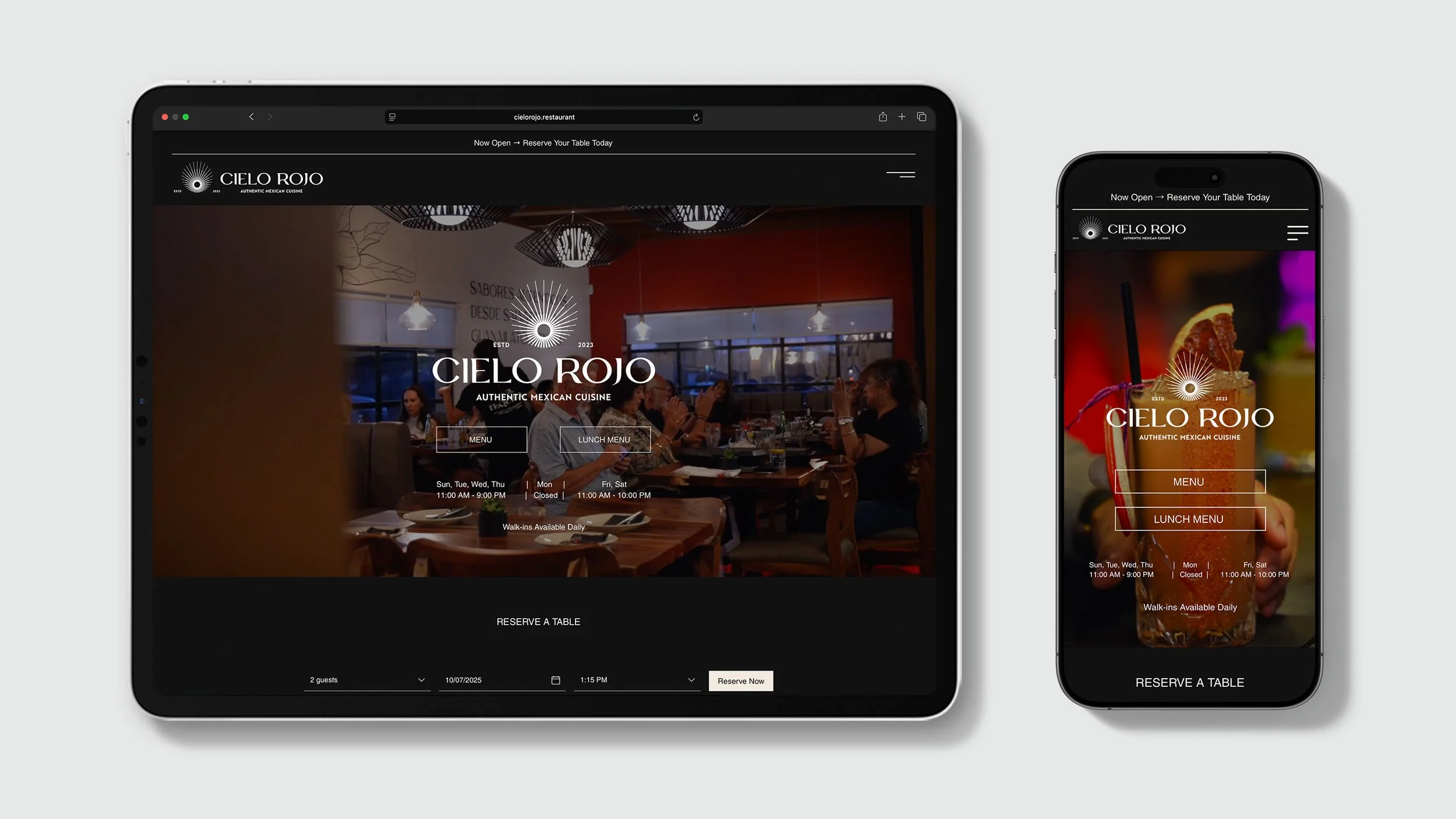 A sister restaurant to MPH, Cielo Rojo brings a fine-casual twist to Mexican cuisine—warm, modern, and family-friendly. Camaleon Creative developed the brand from the ground up, crafting a cohesive identity system that reflects its elevated yet approachable experience. Through branding, photography, video production, and web design, we created a visual story that invites guests to discover and connect with the essence of Cielo Rojo.
